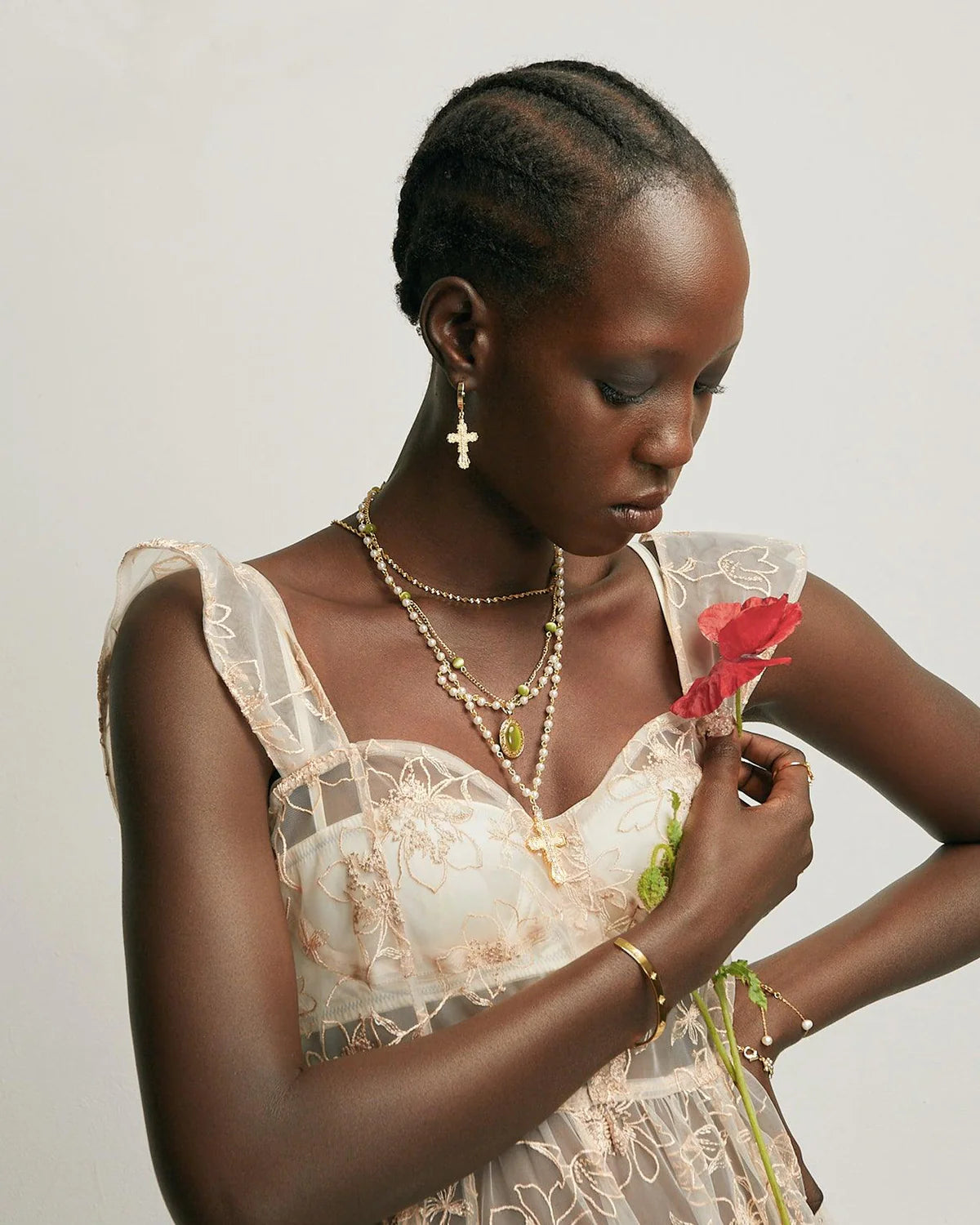 A divine drop of drama. The Celestia Drop Cross Hoops feature gleaming gold-tone huggies with intricately designed cross pendants encrusted in sparkling stones. Elegant, bold, and timeless — these earrings are your go-to for a look that whispers luxury and speaks in sacred symbolism. Pair with the Celestia Cross Pearl Chain for a heavenly statement set.